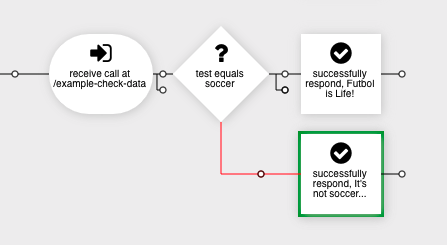 By now, I'm sure you are probably getting a feel for how this process will work. When we send a GET request to /example-check-data the process will look for the key "sport" and check to see if it equals "soccer".